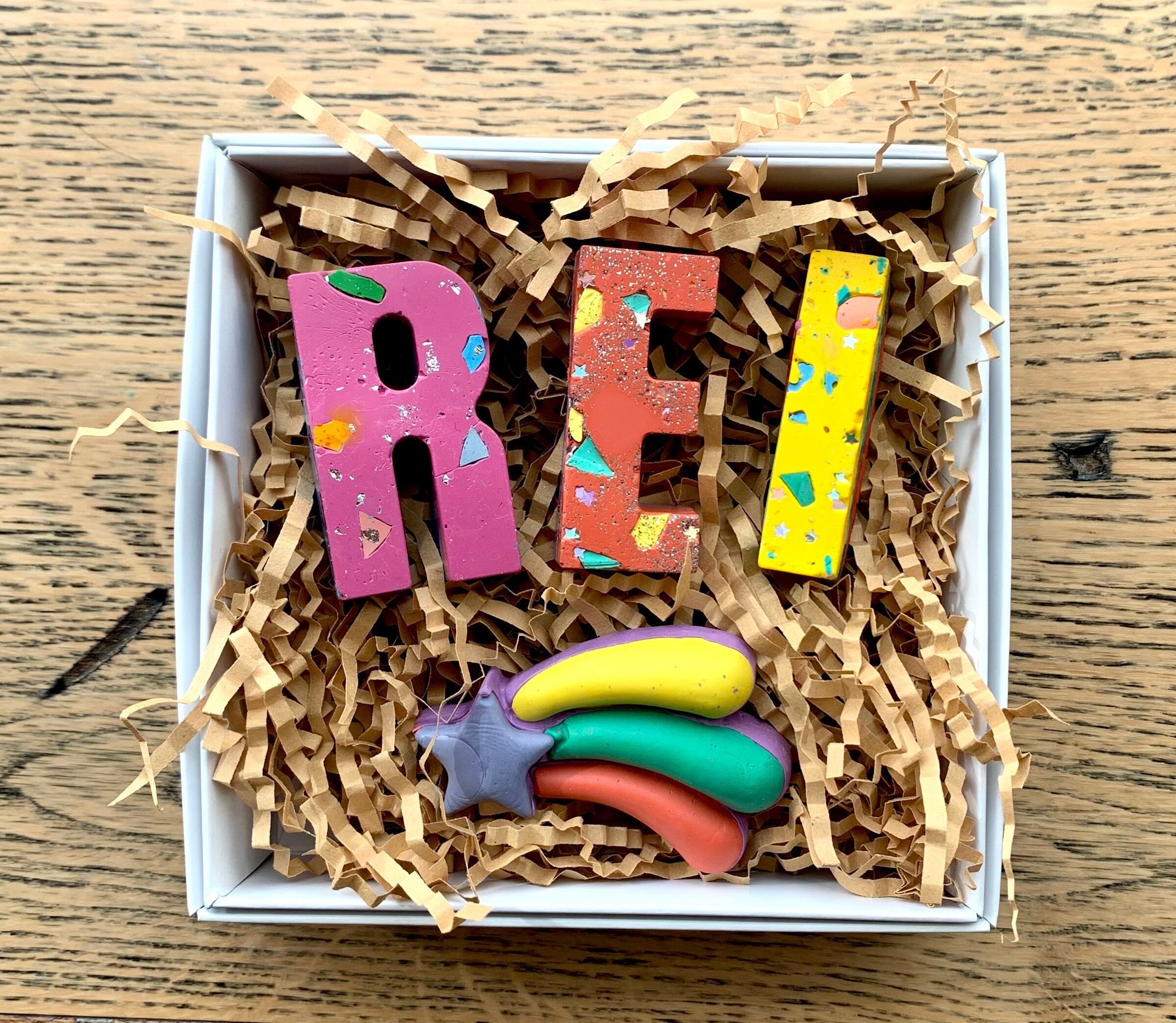モチーフはアイス、流れ星となり華やかで可愛いクレヨンに仕上げます。